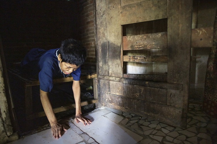 Siti touches the floor with a finger and then feels the floor with both of her hands. East Java, 19 October 2018 ©2018 Andrea Star Reese