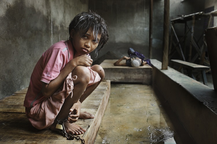 An inmate is shackled in unsanitary conditions at a social care institution. Central Java, 4 October 2018 ©2018 Andrea Star Reese