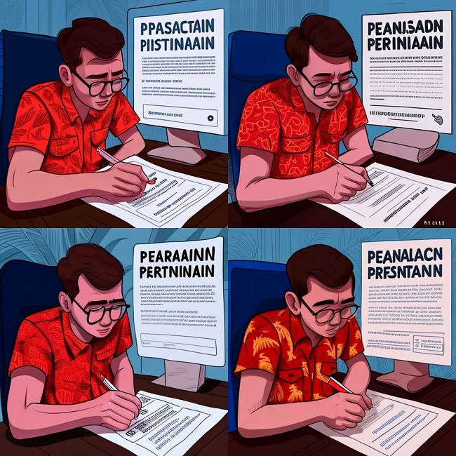 Four further AI visualisations of ‘the feeling of applying for an Indonesian research permit’. These capture the process from the Indonesian counterpart’s perspective / Nicholas J. Long, made with Midjourney