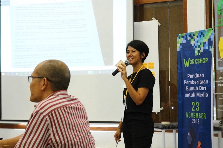 Venny, dari Tim Pencegahan Bunuh Diri Into the Light Indonesia, mengadakan lokakarya tentang pemberitaan bunuh diri pada tanggal 23 November 2019. Sejak 2017, Venny mengetuai proyek ini / Yon Beni.